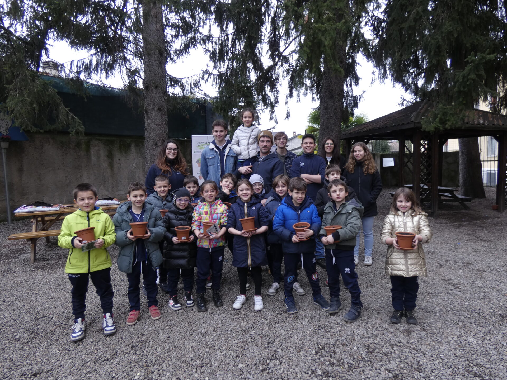 Dopo la teoria poi si è passati alla pratica. Gli alunni si sono recati nel giardino della scuola dove era già stato predisposto tutto il materiale necessario per la semina: i sacchi di terriccio; i vasetti, offerti dall’azienda Plastecnic con sede a La Valletta Brianza; le sementi, «griffate» Franchi Sementi Spa. Ma, oltre al materiale, hanno trovato anche la guida esperta degli studenti dell’Istituto Professionale per l’Agricoltura e lo Sviluppo Rurale della San Vincenzo, che ha sede ad Albese con Cassano.